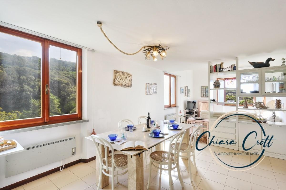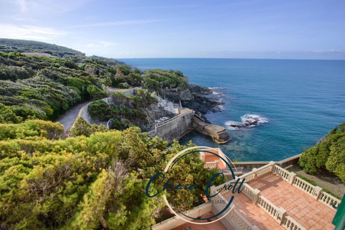 Nella ricercata località delle "FORBICI" a Castiglioncello, all'interno di un'antica e imponente Dimora Storica nobiliare, fedelmente ricostruita dopo il dopoguerra e ora trasformata in un raffinato condominio di lusso che comprende 13 unità, proponiamo un affascinante appartamento su due livelli, situato al secondo e ultimo piano. L'ingresso si apre su un ampio e luminoso soggiorno, perfettamente ventilato, dove troviamo un elegante tavolo in travertino, un pratico angolo cottura a vista e un comodo ripostiglio nel sottoscala. Il soggiorno si estende poi in un salottino con soffitto alto 4,30 metri, caratterizzato da due ampie finestre di cui una offre una vista mozzafiato sul mare, la scogliera e la rigogliosa vegetazione circostante. Questi due ambienti della zona giorno sono sapientemente separati da un mobile su misura che funge anche da arredo. Al piano superiore, un ampio soppalco con altezza di 2,40 metri che affaccia sul salottino ed è suddiviso in due ambienti tramite un armadio condiviso, entrambi gli ambienti sono dotati di lucernari ed in ciascuno è presente un letto matrimoniale. Completa il piano un bagno con doccia. Uno dei punti di forza di questa esclusiva abitazione è la proprietà di una porzione di solarium con vista mare frontale, raggiungibile agevolmente attraverso il curato parco della villa, da cui è possibile accedere direttamente alla scogliera e tuffarsi nelle acque cristalline ricchissime di questo splendido mare. A servizio di questa zona una cabina privata, oltre a docce e bagni condominiali, ed anche un grande e comodissimo rimessaggio con scivola ideale per piccole imbarcazioni, Sup o attrezzattura da mare che si integrano perfettamente con gli ampi spazi verdi comuni. La villa è circondata da un parco incantevole, quasi fiabesco, perfettamente curato, che offre angoli riservati dove rifugiarsi e assaporare la bellezza e l'energia rigenerante del mare. Questa proprietà va vissuta in prima persona per apprezzarne appieno la sua unicità. Una visita è caldamente consigliata: resterete incantati.