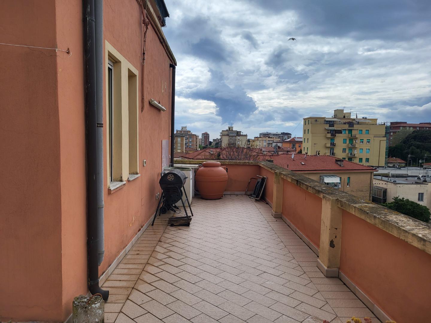 NOSTRA ESCLUSIVA A LIVORNO !!! Appartamento al 4 ed ultimo piano, SENZA ASCENSORE, in complesso con facciata ristrutturata da poco. L'immobile si compone di ingresso, cucina, camera matrimoniale e bagno. Dalla zona ingresso si accede ad una bellissima terrazza di circa 30 mq ad USO ESCLUSIVO da sfruttare per gran parte dell'anno. Al piano terra garage di circa 13 mq con la possibilità di parcheggiare un'altra auto. Spesa condominiale di circa euro 30,00 mensile. Compreso nella vendita gran parte dell'arredamento !!! Euro 123.000 tratt. [Classe energetica: G]. (Rif. 1540).